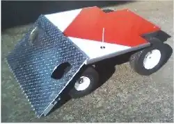 The Fight to The Finish took place on a 16' by 16' platform elevated high above the floor. A low guard rail surrounded the platform for the first minute and then fell away. The last robot on the platform moved on to the finals.