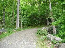 Rockefeller State Park Preserve abuts the Old Croton Aqueduct State Historic Park and Sleepy Hollow Cemetery. The preserve also abuts extensive private land owned by the Rockefeller family which is open to the public. The trails in the private area, still in use by the Rockefeller family[3] and also open to the public, connect with those in the state park.[4] Many of these trails were planned and laid out by John D. Rockefeller (Sr.) and his descendants.[5] Access to these trails, and additional access to the state park trails, is available from Sleepy Hollow Road and Bedford Road/Route 448 in Sleepy Hollow. A section of the State Park is west of the Preserve, along the Hudson River, and is called the Rockwood Hall section.