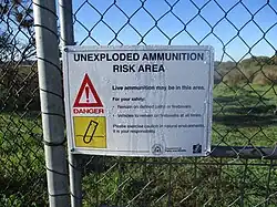 The Lake Cooloongup, Lake Walyungup, Port Kennedy Scientific Park and Lark Hill areas are potentially contaminated with unexploded ordnance, having been used as artillery range by the Department of Defence in the era around World War II.[2]