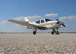 The cabin is 47 inches (1,200 mm) wide and 49 inches (1,200 mm) high,[5] compared to a contemporary aircraft like the Piper Arrow at 41 inches (1,000 mm) by 38 inches (970 mm).[15] This was the most spacious cabin of any design of the era.[5] There is a full-sized door on both sides of the aircraft, while most aircraft of this class have a full-sized passenger door on one side and a smaller door for the pilot on the other.[2][9]