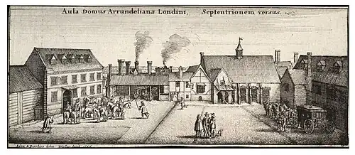 After the 4th Duke's execution in 1572, Townshend continued to serve his son and heir, Philip Howard, 20th Earl of Arundel, who was still a minor at the time of his father's death. In 1583 Arundel made a deed of gift to Townshend and William Dix of all his movable goods to assist with the payment of Arundel's debts. Townshend's conduct sometimes displeased Arundel.[7] In 1582 Arundel was affronted when Townshend "hurried him off by boat to Arundel House, to avoid his becoming embroiled in the affray between the Earl of Oxford, and Thomas Knyvet".[7] On another occasion, in June 1589, Arundel complained to William Cecil, 1st Baron Burghley, that his uncle, Lord Henry Howard, and some of Arundel's tenants were suffering from Townshend's zealousness and rigidity: "Sir Roger Townshend is so resolute to part with nothing more than he shall be by law enforced".[7] Years later, however, Arundel was more appreciative of Townshend's service, in his last will terming him "my loving friend", and bequeathing him a "fair bowl with a cover of 30 ounces double gilt".[1][7]
