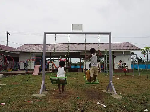 The dominant ethnic Buddhist group in the region, the Rakhine, reject the label "Rohingya". Specific laws pertaining to this population impose restrictions on "marriage, family planning, employment, education, religious choice, and freedom of movement". The people in Rakhine State also face widespread poverty, with 78% of families living below the poverty line. Tensions between the Rohingya and the other religious groups have recently exploded into conflict.[27] Beginning in 2012, the first incident occurred when a group of Rohingya men were accused of the rape and murder of a Buddhist woman.[28] Buddhist nationalists retaliated by killing and burning Rohingya homes. The international community responded by denouncing this "campaign of ethnic cleansing". Many Rohingya were placed in internment camps, and more than 120,000 remain housed there. In 2014, "more than 40 Rohingya were massacred in the village of Du Chee Yar Tan by local men, the U.N. confirmed. Among the findings were 10 severed heads in a water tank, including those of children".[29][30]