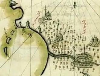 ![]() The mosque in a map by Piri Reis (upper left). | |