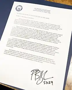 - ^ "Fort Liberty becomes Fort Bragg, renamed for Battle of Bulge hero". www.army.mil. March 10, 2025. Retrieved March 12, 2025.