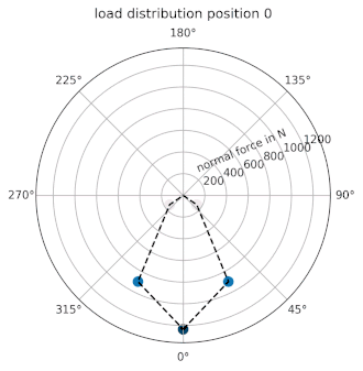 As in all radial bearings, the outer load is continuously re-distributed among the rollers. Often fewer than half of the total number of rollers carry a significant portion of the load. The animation on the right shows how a static radial load is supported by the bearing rollers as the inner ring rotates.