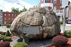 The plaque is misleading as the Rollstone Boulder was not brought from Mt. Monadnock, just somewhere in central New Hampshire, there was no popular subscription to save it, and no citizens of Fitchburg were asked to raise money for its move.[11]