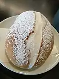 | Maritozzi | ![]() | They are made with an enriched dough bread roll that is split after baking and cooling and filled with cream. They are enriched buns, made with dried fruit and filled with whipped cream. |