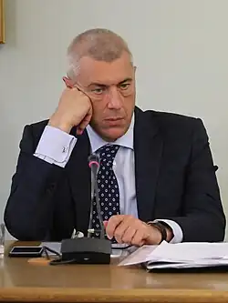 The PiS-led coalition collapsed in mid-2007, triggering strife between the former partners. After losses in the elections of late 2007, Giertych stood down as leader of the LPR and left the party in 2009, which had already been deserted by most adherents such as Krzysztof Bosak and Robert Winnicki. Giertych became an active opponent of former coalition partner PiS.[9] He declared numerous times to vote for PO, co-founded several political initiatives and established himself as a busy investigator of embezzlement charges against PiS cadre,[10] while he is perceived critically in parts of the liberal public. Although Giertych changed party allegiance, he largely remains a proponent of right-wing politics, as is seen in his stance on abortion.[11][12] He announced his intention to run for the Polish Senate in the 2023 Polish election,[13] but he decided against it after the left-wing Nowa Lewica strongly opposed to him.[14] Instead, he has been offered to be a candidate for the Polish Sejm in 2023, on KO's lists, which he accepted.[15] Since autumn 2023, he is a member of the Sejm following the 2023 Polish parliamentary election from the list of Civic Coalition. In January 2024, he was chosen to be deputy chairman of an investigation committee of the Civic Coalition parliament faction.[16] In 2025, he joined the liberal Civic Platform.[17]