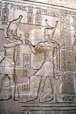 - ^ The titles and names follow von Beckerath (1984): hieroglyphics pp. 296–306 and transliterations pp. 123–127.[21] The names of emperors were written in hieroglyphics phonetically, based on their names in Greek.[22] Because the spellings were phonetic, numerous emperors are known by multiple different renditions of their names and titles. Different renditions are included here only if they actually differ in meaning.