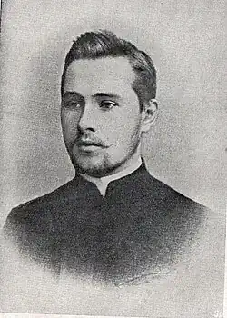 Smetona had recently passed his entrance examinations for the Samogitian Diocesan Seminary in Kaunas.[13] However, he had felt no great calling for the priesthood and enrolled into Jelgava Gymnasium instead. Jelgava Gymnasium was a cultural hub of the Lithuanian National Revival and attracted many future leaders in Lithuanian culture and politics, including Juozas Tūbelis (1882-1939) and Vladas Mironas (1880-1953), who later became Smetona's political companions.[14] In particular, Lithuanian language and culture was openly promoted by Jablonskis, with whom Smetona developed a close friendship.[15] Both Antanas Smetona and Jablonskis were great promoters of the Lithuanian language and culture. The Chodakowski family was soon inspired by their passion. Romanas’ youngest sister Jadvyga once asked Jablonskis, who was visiting the Chodakauskas house, “Who am I?” Jablonskis answered, “Well, how do you feel?” Jadvyga replied, “I feel Lithuanian.” “That's it!” Jablonskis exclaimed.[16]