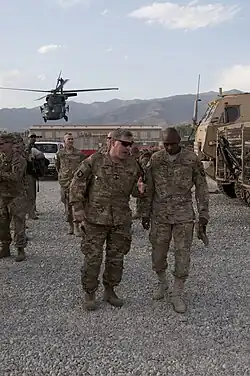 6. ^ "U.S. Army Brig. Gen. Ronald F. Lewis escorts U.S. Deputy Defense Secretary Ash Carter to an awaiting helicopter as he wraps up a visit to Jalalabad Air Base, Afghanistan, May 13, 2013". U.S. Department of Defense. 13 March 2013.