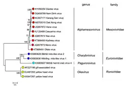 Ronidovirineae is a suborder of enveloped positive-strand RNA viruses in the order Nidovirales which infect arthropods.[1] Host organisms include crustaceans such as shrimp.[2]