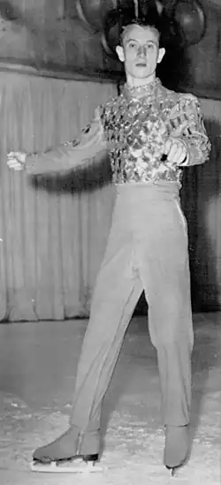 Ronald Frederick "Ronnie" Robertson (September 25, 1937 – February 4, 2000) was an American figure skater who was best known for his spinning ability. He won the silver medal at the 1956 Winter Olympics, became one of the youngest male figure skating Olympic medalists. He twice won the silver at the World Figure Skating Championships. He retired from skating after the 1956 U.S. Championships, where he was nearly disqualified after he was accused by the German Figure Skating Federation for excessive expenses on a European tour. His father, Albert Robertson, a naval architect, accused Hayes Jenkins of trying to disqualify his son.[2] After a huge fight with the U.S. Figure Skating Federation, Robertson was not disqualified after he lost to Jenkins and retired from competitive figure skating and signed a two-year contract with the Ice Capades for $100,000.[3]