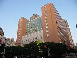 Much of the original hospital, including the emergency room, was torn down to make way for two 49-story residential buildings at One Columbus Place. The emergency room was located in the James Russell Memorial Surgical Building on the corner of 9th Ave and W. 58th Street, and underwent a refurbishment in 1981. It was notable for being the location where John Lennon was pronounced dead upon arrival after being shot outside his apartment building in 1980, and later utilized for hospital emergency room exterior shots in the television sitcom Seinfeld.[12][13] The Surgical and Tower Memorial Buildings were demolished and replaced by the One Columbus Place development in 1999.[14]