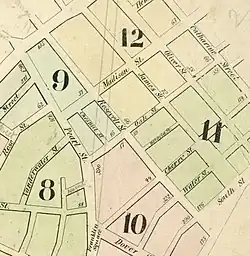 Roosevelt Street was a street located in the Two Bridges district of Lower Manhattan, which existed from the British colonial period up until the early 1950s, running from Pearl Street at Park Row (Chatham Street) southeast to South Street.[1] It ran parallel to James Street, one block west.[2] The western end of Roosevelt Street later became the walkway from Park Row to the front entrance of the Chatham Green Apartments at 165 Park Row.