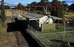 The Ropes Creek line was named after a nearby creek bearing the same name. It was built during World War II to transport munitions factory workers to and from St Marys.[1] The line opened from St Marys to Dunheved on 1 March 1942 and Dunheved to Ropes Creek on 29 June 1942.[2] When electrification arrived in the 1950s, there was a plan to electrify the Ropes Creek line. For the most part all the sidings in the Dunheved station area were electrified to enable the New South Wales Government Railways (NSWGR) to use electric locomotives of the 46 class to shunt trains without the need to change to diesel-electric or diesel-hydraulic locomotives.