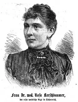 Rosa Kerschbaumer-Putjata (née Wassiljewna Schlykowa, Russian: аиса Васильевна Шлыкова, 21 April 1851 – 27 July 1923)[1] was a Russian ophthalmologist and Austria's first female doctor.[2] She campaigned for women's right to study medicine in Austria.
