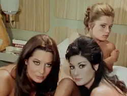 Neri, the bombshell, was also much in demand for erotic giallo thrillers, horror, and sexploitation films. She was in Jess Franco's box office hit 99 Women (1969), one of the first women in prison films,[4] and Top Sensation (The Seducers) (1969) opposite Edwige Fenech.[5] In 1972 she played Farley Granger's wife in Amuck!. Granger plays a wealthy author who hires a beautiful secretary (Barbara Bouchet) and engages in kinky sex games with her and his wife. Also in 1972, Neri played the lead role in the erotic horror flick Lucifera: Demon Lover.