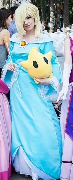Rosalina, known as Rosetta (Japanese: ロゼッタ, Hepburn: Rozetta) in Japan, is a character in the Mario franchise. She debuted in Super Mario Galaxy (2007), as a non-player character who resides in the Comet Observatory, the game's hub world. In the game, Rosalina is the adoptive mother of the Lumas, a fictional species of star-like creatures, and also watcher of the cosmos. Rosalina has since appeared as a player character in subsequent games, such as the Mario Kart, Mario Party, and Super Smash Bros. series, as well as Super Mario 3D World. She also appears in Mario + Rabbids Sparks of Hope (2022), where she is possessed by Cursa, the main antagonist.