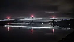 The Rose Fitzgerald Kennedy Bridge is an extradosed bridge over the River Barrow in Ireland. It was built as part of the N25 New Ross Bypass, and was officially opened on 29 January 2020 by Taoiseach Leo Varadkar and opened to traffic on 30 January 2020, becoming Ireland's longest bridge.[2][3] The bridge received in 2021 an Outstanding Structure Award from the International Association for Bridge and Structural Engineering.[4][5]