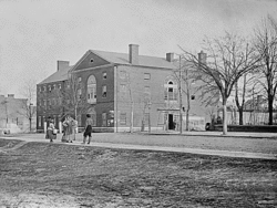 Pinkerton supervised visitors to Greenhow's house and moved other suspected Southern sympathizers into it, giving rise to the nickname Fort Greenhow. He was pleased to oversee the visitors and messages, as it gave him more control of the Southern flow of information.[24] While messages continued to be sent to Jordan, he discounted them after Pinkerton mounted his control. When a letter from Greenhow to Seward complained of her treatment was publicized, there was Northern criticism for what was perceived as too lenient treatment of a spy. Pinkerton transferred Greenhow on January 18, 1862, to Old Capitol Prison, shutting down Fort Greenhow. So many political prisoners were detained that a two-man commission was set up to review their cases at what were called espionage hearings.[25] Greenhow was never subjected to trial.[4] Her youngest daughter, "Little Rose", then eight years old, was permitted to stay with her.
