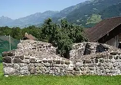 Rosenberg Castle is the westernmost of three ruined castles in Giswil. Traditionally thought to be part of a defensive line due to their proximity and that they lay in a straight line, they are now generally believed to be three separate castles built for different purposes.[1] The easternmost, Rudenz Castle was built by the Knights of Rudenz in the early 13th century. It lies about 2 km (1.2 mi) from Rosenberg. The center castle, Hunwil Castle was completely demolished to provide stone for the parish church which was dedicated in 1635.[2]