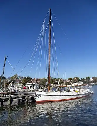 Rosie Parks is a Chesapeake Bay skipjack built in Wingate, Maryland, in 1955 by Bronza Parks. She is owned by the Chesapeake Bay Maritime Museum (CBMM); her hailing port is Cambridge, Maryland. Rosie Parks was purchased by CBMM in 1975 from Orville Parks—the boatbuilder's brother—and she was the first skipjack to be preserved afloat by a museum.[2] On November 2, 2013, Rosie Parks was relaunched after a three-year restoration.[3] She is assigned Maryland dredge number 19.[4]