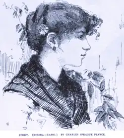 Rosina Ferrara (1861–1934) was an Italian artist's model from the island of Capri,[1] who became the favorite muse of American expatriate artist John Singer Sargent. Captivated by her exotic beauty, a variety of 19th-century artists, including Charles Sprague Pearce, Frank Hyde, and George Randolph Barse, made works of art of her.[2][3] Ferrara was featured in the 2003 art exhibit "Sargent's Women" at New York City's Adelson Galleries, as well as in the book Sargent's Women published that year.[3][4]