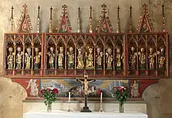 Another unusual piece of wooden sculpture from the church is a medieval coffin with a statue of Christ. On Good Friday the congregation places the statue in the coffin. Before they arrive again on Easter Sunday the priest removes the statue and so illustrates Christ has risen from the dead.[3][4]