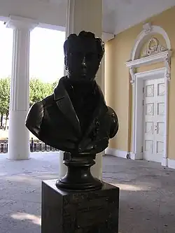 The pavilion was included in restoration work, carried out between 2002 and 2004, which restored the gardens to Rossi's original designs. During this time a bust of Rossi, a copy of a work by Nikolai Pimenov, was installed in the pavilion.[4][5] On 10 July 2001 the pavilion was designated "an object of historical and cultural heritage of federal significance."[8]