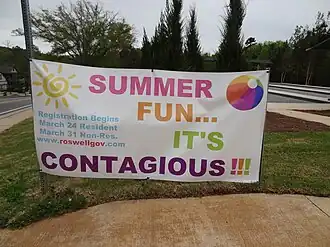 The Roswell Recreation and Parks is a municipal department serving the city of Roswell, Georgia. It oversees eight public-use parks covering over 900 acres and sponsors over 25 athletic programs ranging from soccer, football, basketball, baseball, and swimming for all age groups.[1] It has been recognized as one of the top civic recreation programs in the United States.[1][2][3][4] The Roswell Recreations Department also works closely with local middle and high schools by providing practice fields.