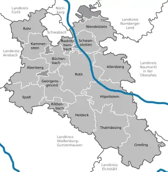 Roth is a Landkreis (district) in Middle Franconia, Bavaria, Germany. It is bounded by (from the northeast and clockwise) the districts of Nürnberger Land, Neumarkt, Eichstätt, Weißenburg-Gunzenhausen, Ansbach and Fürth, and the cities of Schwabach and Nürnberg.