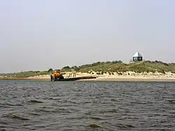 In 1959, the Boschplaat merged with Rottumerplaat.[2] Sediment deposition has caused the island to become significantly larger in recent years.[1] Access to the island is prohibited since Rottumerplaat is a resting and forage area for numerous bird species.[1] Rijkswaterstaat and Staatsbosbeheer are responsible for the administration of the island.[3] Rottumerplaat is the northernmost point of the Netherlands.[4]