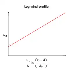 The roughness length appears in the expression for the mean wind speed near the ground derived using the Monin–Obukhov similarity theory:[2]