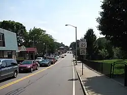 Shortly after the intersection, and just south of Jacobs Pond, the route enters Norwell as Main Street, traveling through the town's Historic District and village center. Route 123 finally ends after three-quarters of a mile in the neighboring town of Scituate, at a rotary intersection with Route 3A.
