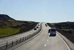 Heavy summer traffic is especially a problem during the summer at the town of Selfoss, where a single two lane bridge, Ölfusárbrú, is routed through the town carries practically all of the traffic in the south of the country, a significant bottleneck.[14] This is planned to be replaced by a new bypass road and new 4-lane bridge over the Ölfus river, currently under construction and projected to be complete by 2028.[15]