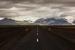 The road was completed in 1974, coinciding with the 1,100th anniversary of the country's settlement[2] when the longest bridge in Iceland,[3] crossing the Skeiðará river in the southeast, was opened. Previously, vehicles intending to travel between southern settlements, e.g. Vík to Höfn, had to travel north of the country through Akureyri, making the opening a major transport improvement to the country.