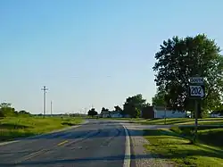 Route 202 begins at an intersection with US 63/US 136 in Lancaster, heading west on a two-lane undivided road. The road continues east past this intersection as part of US 136. From the southern terminus, the route runs through agricultural areas with some trees. Route 202 reaches Glenwood, where it becomes South Avenue and passes near residences, intersecting Route M. The route turns north onto an unnamed road, with Route AA continuing to the west. Route 202 curves to the northwest and leaves Glenwood, passing through more farmland. The road continues through more rural areas, intersecting Route F and Route Z. After the intersection with the latter, the route heads to the north. Route 202 curves northeast and passes a few homes in the community of Coatsville before coming to its northern terminus at the Iowa border, where the road continues into that state as Iowa 202.[1]