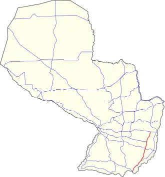 National Route 6 (officially, Ruta Nacional Número 6 "Dr. Juan León Mallorquín", better known as Ruta Sexta) is one of the national highways of Paraguay. With a length of 252 km it mainly connects the second and third most populated cities in Paraguay, Ciudad del Este and Encarnación respectively. It crosses the departments of Alto Parana and Itapua.