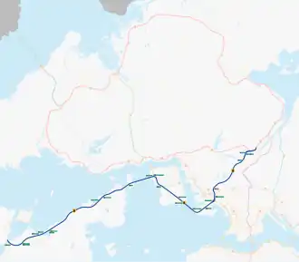 | Length | 33.1 km (20.6 mi) 32.6 kilometres (20.3 mi) eastbound | |||