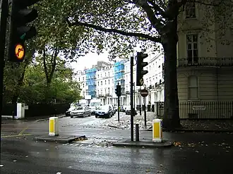 Behind the terraces is the Royal Crescent Mews. The Mews is a part-cobbled cul-de-sac off Queensdale Road in the Royal Borough of Kensington and Chelsea. It contains 34 properties used for residential purposes. It is part of Kensington's Norland Conservation Area; first designated in 1969, it contains Royal Crescent, Norland Square and St. James's gardens. Building of the area began in the 1840s and was completed just fifteen years later. It contains linked terraces and is largely urban in style.