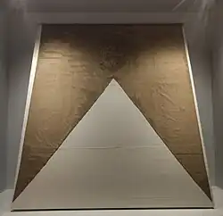 A banner of arms is a square or oblong heraldic flag that is larger than a pennon. It bears the entire coat of arms of the owner, composed precisely as upon a shield but in a square or rectangular shape. Banners of knights of the Order of the Garter are displayed during their lifetime at St George's Chapel in Windsor.[8] From Victorian times, Garter banners have been approximately 5 feet by 5 feet[9] and have a fringe. Reigning European monarchs are admitted to the Order as "Strangers". Juan Carlos I and his successor Felipe VI are concurrently Stranger Knights of the Garter. The Spanish monarch's banner (like the arms) is divided into four quarters: the 1st for Castile, 2nd for León, 3rd for Aragon and 4th for Navarre; enté en point, with a pomegranate for Granada and an inescutcheon with the arms of the regnant House of Bourbon-Anjou. The fringe is golden, as for other foreign monarchs and British Royal Family members.[10]