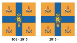 | 1908–2013 | The flag introduced in 1908 was modified slightly in 2013, on the accession of King Willem-Alexander. | |