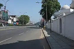 Royapettah, along with the suburbs of Nungambakkam and Teynampet, was part of the Great Choultry Plain, as the British had it in their records back in 1721.[4] Soon after the arrival of the British in the city in the early 17th century, a large Eurasian population started settling in Royapettah and surrounding regions in the 17th and 18th centuries.[5] Muslim settlements started appearing in the neighbourhood from the latter half of the 18th century.[6] In 1798, the British East India Company constructed the Amir Mahal to house its administrative offices.[7] When the Company annexed the Carnatic kingdom in 1855 with the Doctrine of Lapse, the Chepauk Palace, the official residence of the Nawabs, was auctioned off and purchased by the Madras government.[7] The Nawab moved to a building called Shadi Mahal on Triplicane High Road and lived there.[7] However, the British granted the Amir Mahal to the Prince of Arcot and the office building was soon converted into a palace by Robert Chrisholm.[8] In 1876, the Nawab moved in with his family into the Amir Mahal, which has since been the residence of the Nawabs of Arcot.[7]