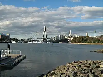 View of Rozelle Bay and the Anzac Bridge from Federal Park. | |