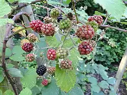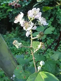 Rubus bifrons, the European blackberry or Himalayan blackberry,[1] is a European species of flowering plant in the rose family. It is widespread across much of Europe[2] and naturalized in scattered parts of North America.[3] It is sometimes considered to include the species R. armeniacus.[1]