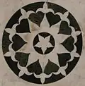 The exterior walls are decorated with 30 square panels of marble inlay work, with mainly vegetal and geometrical patterns.[4]