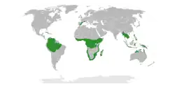 Range of subfamily Rutoideae sensu Groppo et al., 2012