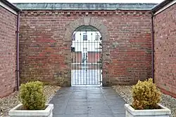 The ice house is a Grade II listed building, one of three survivors in the district. The building was renovated when the main hall was restored and is protected and maintained by the estate. It is circular, built in sandstone, brick and earth with a domed roof above an underground chamber entered through a brick passage. Surrounding the ice house is a ha-ha forming a complete circle about 35 metres (115 ft) in diameter.[7] In winter ice was taken from the frozen lake to the ice house for storage for the rest of the year.