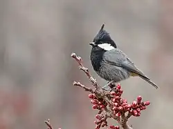 The rufous-naped tit (Periparus rufonuchalis), also known as the black-breasted tit or dark-grey tit, is an Asian songbird species in the tit and chickadee family (Paridae). It was sometimes considered conspecific with the rufous-vented tit (P. rubidiventris), and was formerly placed in the genus Parus.[2]